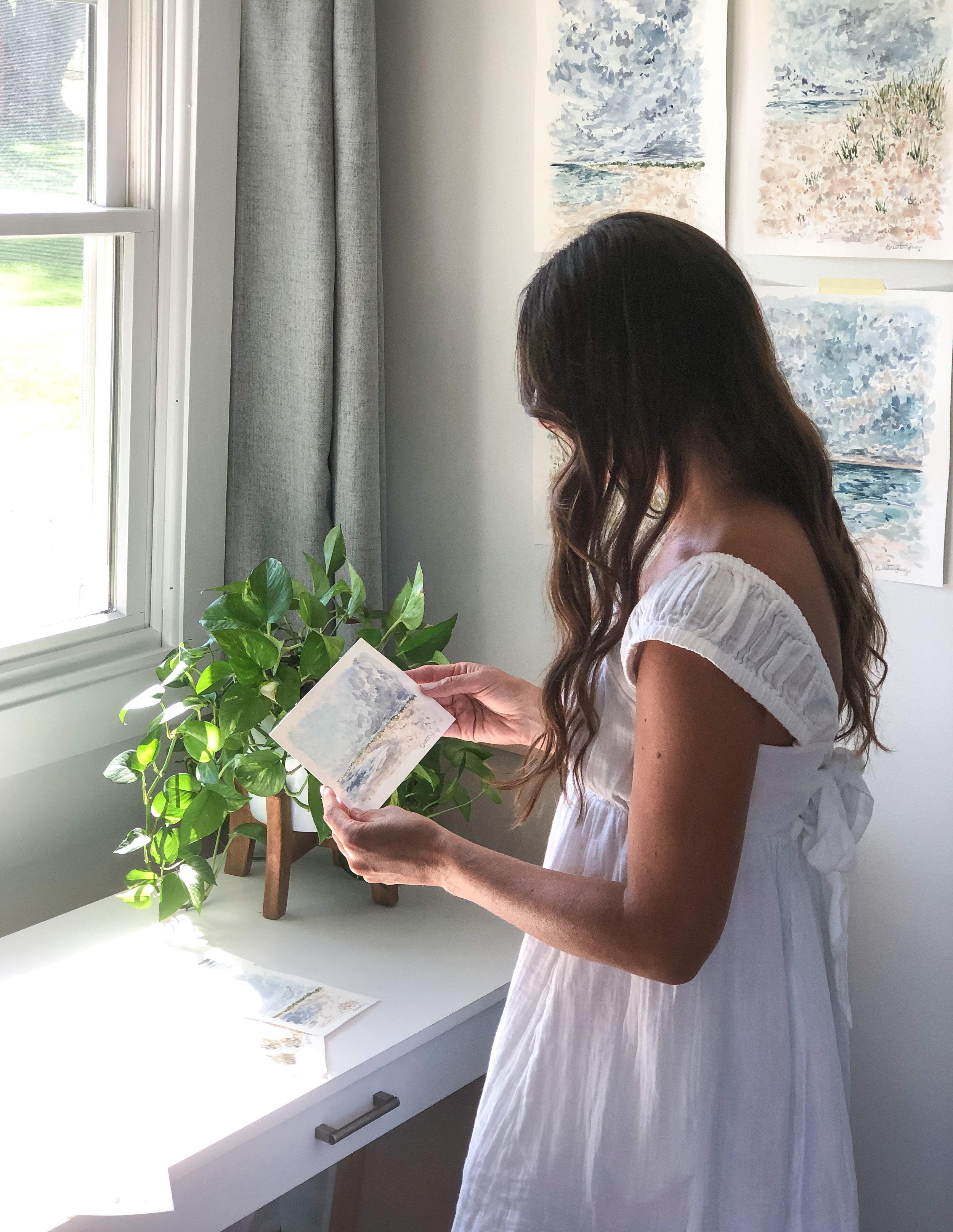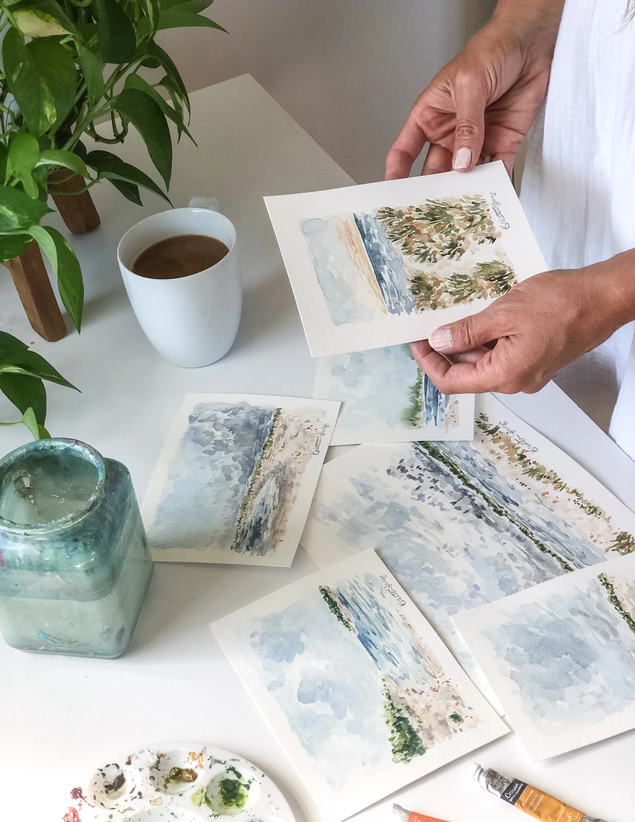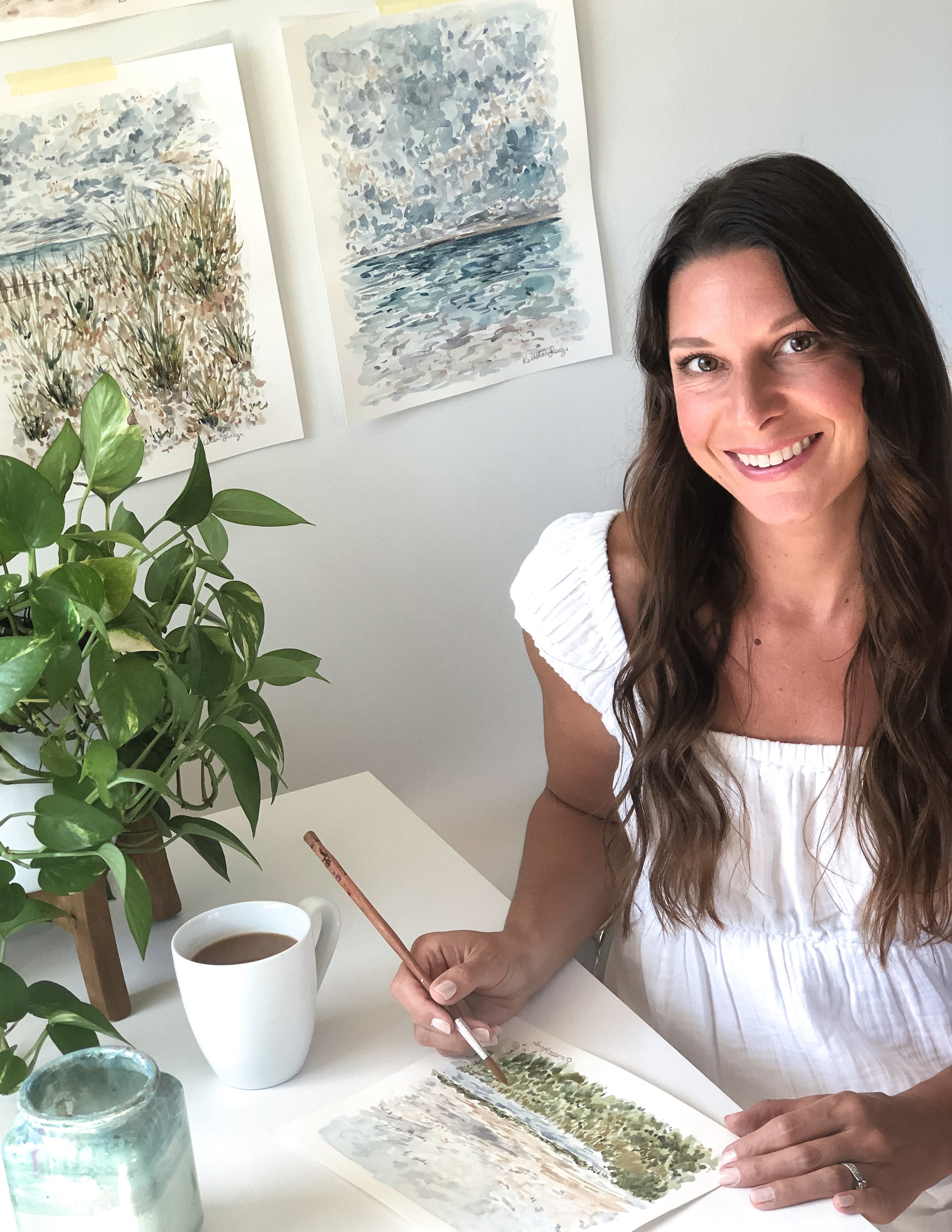 Before our second son was born, my husband and I spent a few wonderful years living on Long Island, where daily walks along the beach filled my soul with inspiration. The coastal landscapes I paint today are often drawn from those cherished memories or our more recent travels. Now, I find endless inspiration in wide-open fields and peaceful woodland walks with my boys—watching them explore, laugh, and experience the world with fresh eyes.