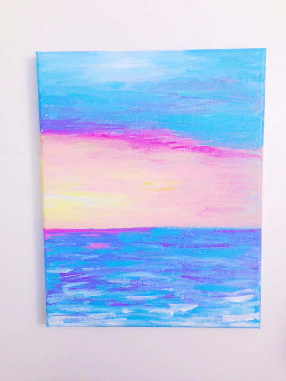 This painting needs so much more work and although it's hard to share an unfinished piece, I know it's beneficial to show you the behind the scenes and the process. My process is very basic, in which I decide on a color pallet and then work up layers upon layers of color. Right now I'm not totally loving this piece but that is how I know it's not anywhere near done. When I can't layer anymore and I have that gut feeling that it's complete, that is when I know it is finished. It has to feel right.
