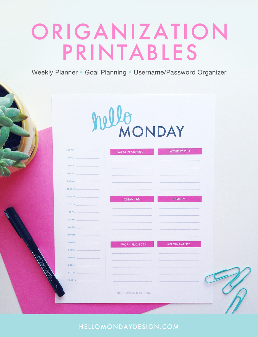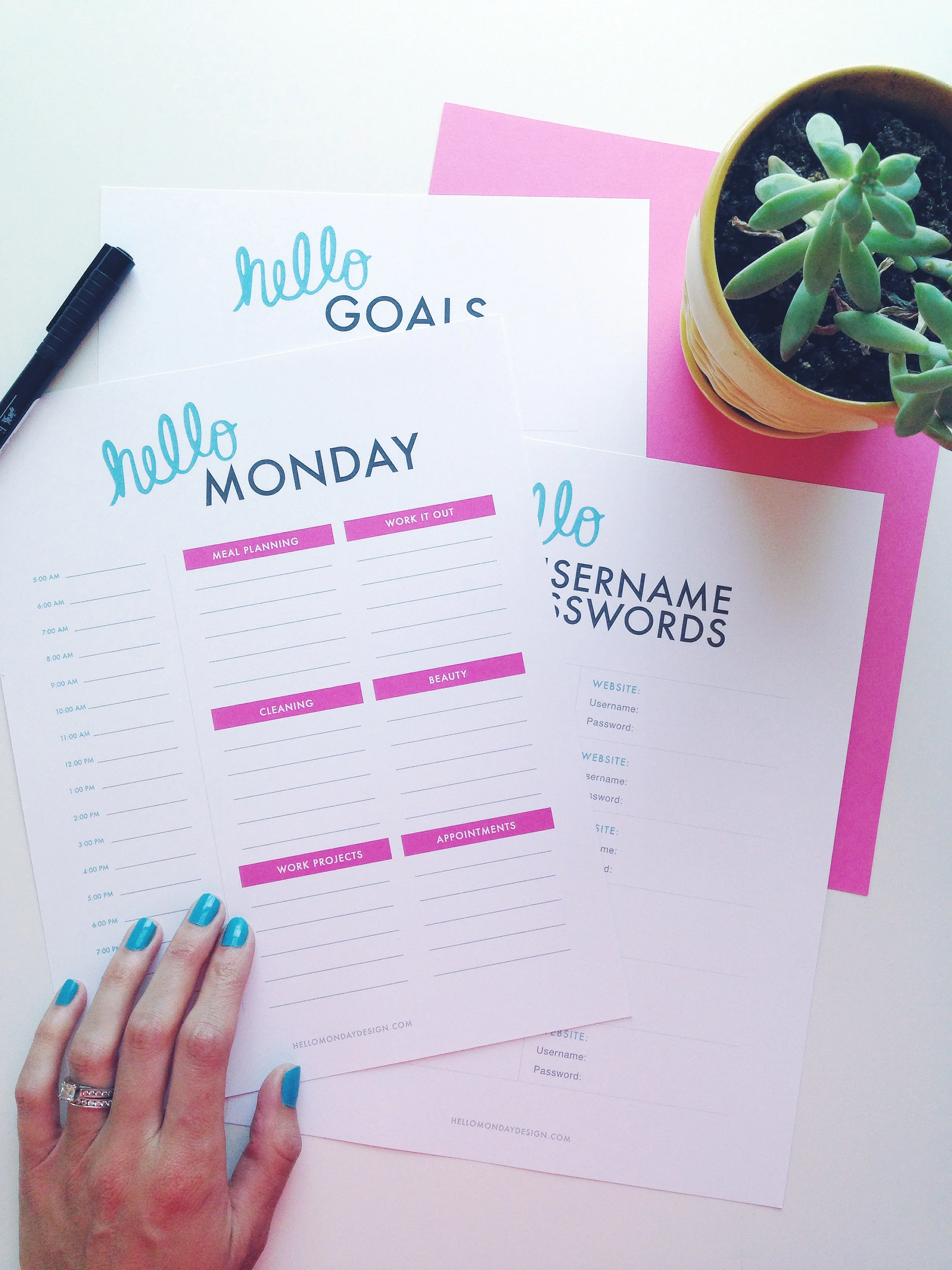 I'm bringing back the freebie friday installment to the blog. First up, the new and updated weekly planner in addition to a new username/password organizer and a goal planning checklist. Just a couple things to help guide you through the craziness of each week. Enjoy!